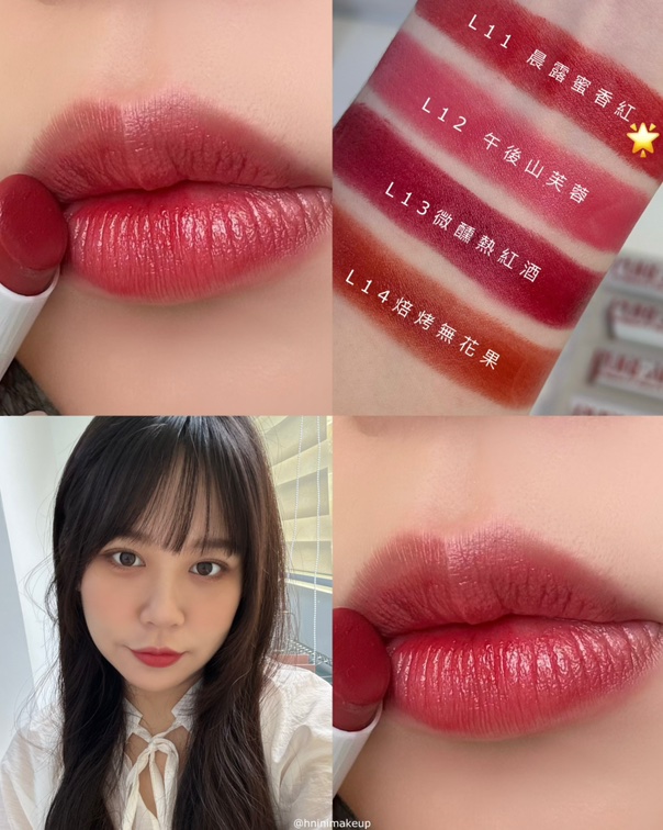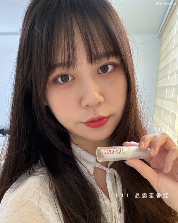 充滿朝氣的蘋果紅,唇紅齒白的感覺,很百搭、拍照上鏡